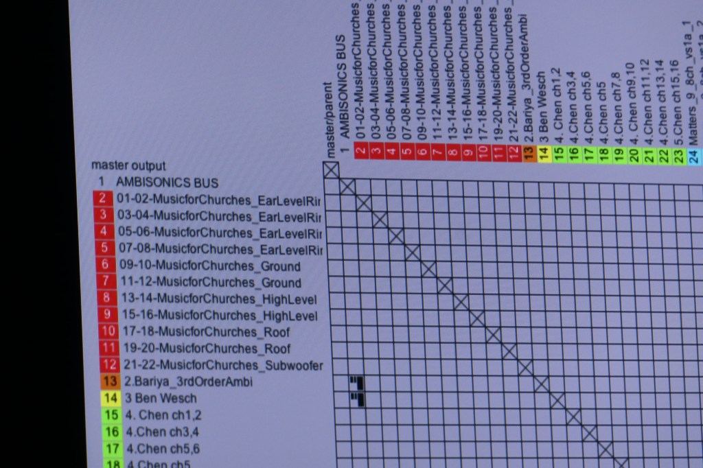 Music for Churches is a 15 minute acousmatic composition that was presented through a 20.2 immersive loudspeaker setup.